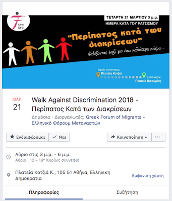 Ρατσισμού και των Φυλετικών Διακρίσεων σήμερα, 21 /3, και το Greek Forum of Migrants -